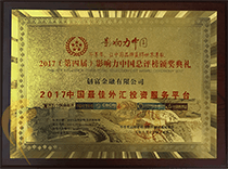 2017年6月17日,由中国商界杂志社、中国商报社、中国电子商务协会品牌案例研究院、中国信息协会等机构联合主办,“2017第四届「华尊奖」中国品牌影响力总评榜年会”在京隆重召开,创富国际荣获“华尊奖—最佳外汇投资服务平台”奖